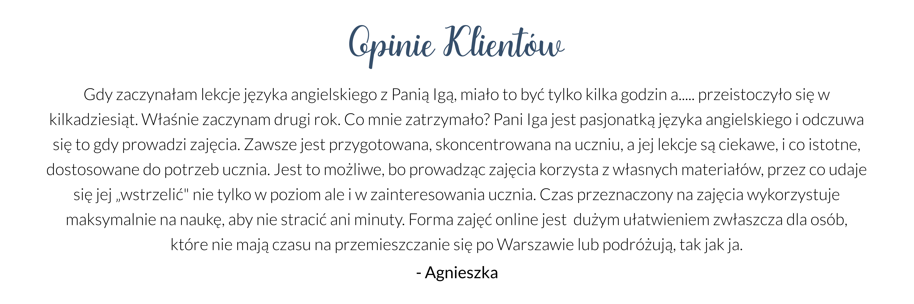 Uczę osoby dorosłe oraz młodzież. Prowadzę zajęcia na wszystkich poziomach zaawansowania. Tworzę również autorskie materiały dydaktyczne, aby jeszcze lepiej dostosowywać materiały do potrzeb moich klientów.